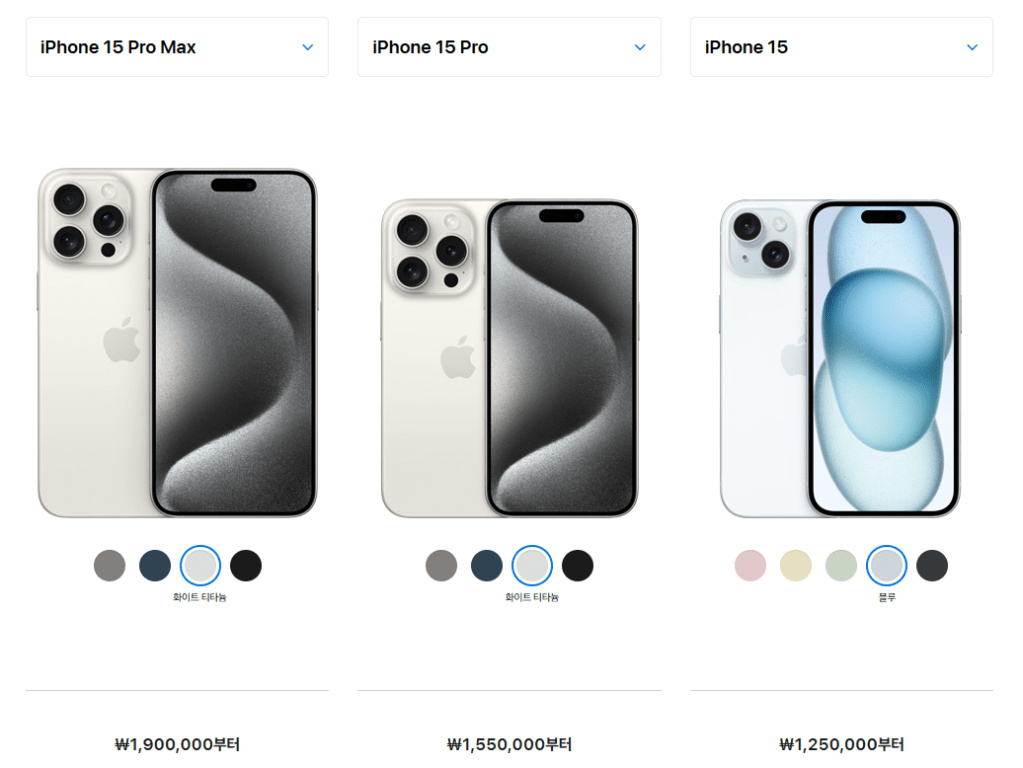 <그림: 제품 사양에 따라 차별화 되어있는 아이폰15의 가격 정책2>