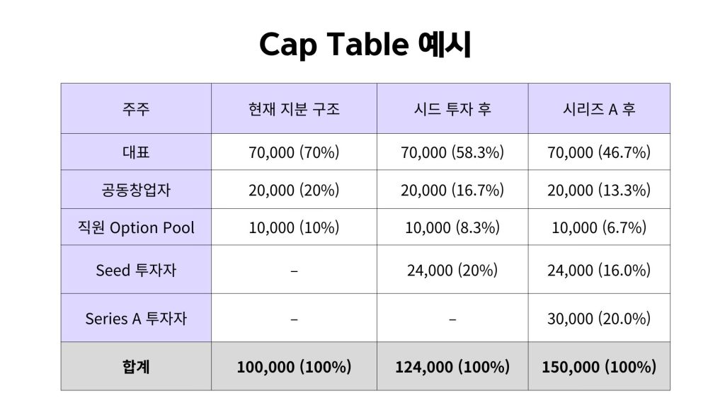Cap Table은 단순히 “지분이 희석된다”를 보여주는 게 아니라,