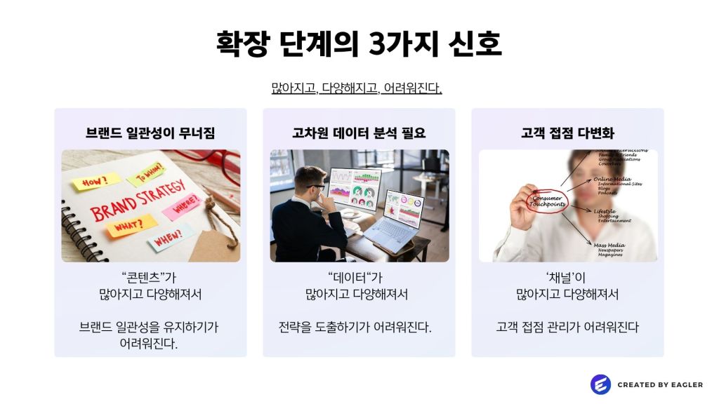 셋째, 고객 접점이 폭발적으로 늘어나 관리가 어려워질 때입니다.
